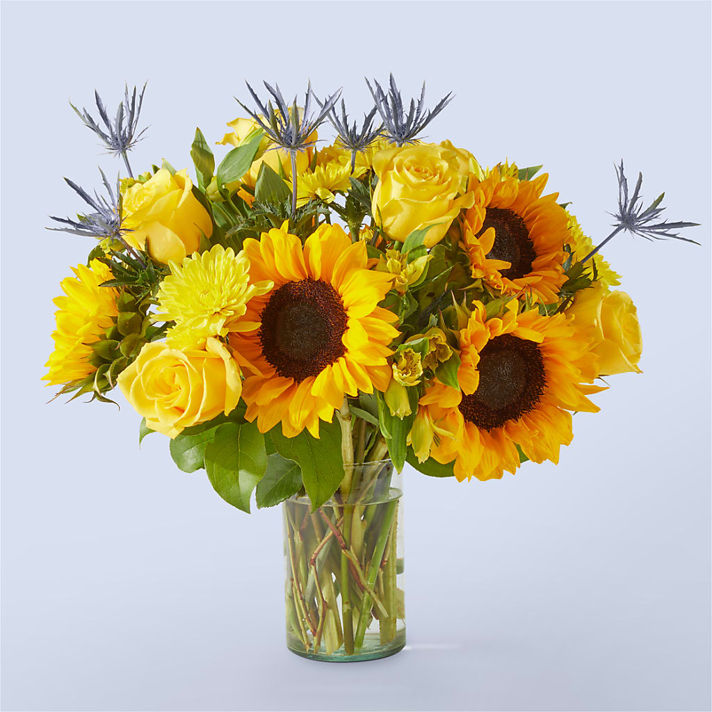 Feel like someone's cheering you on with bright sunflowers, roses, and alstroemeria.
